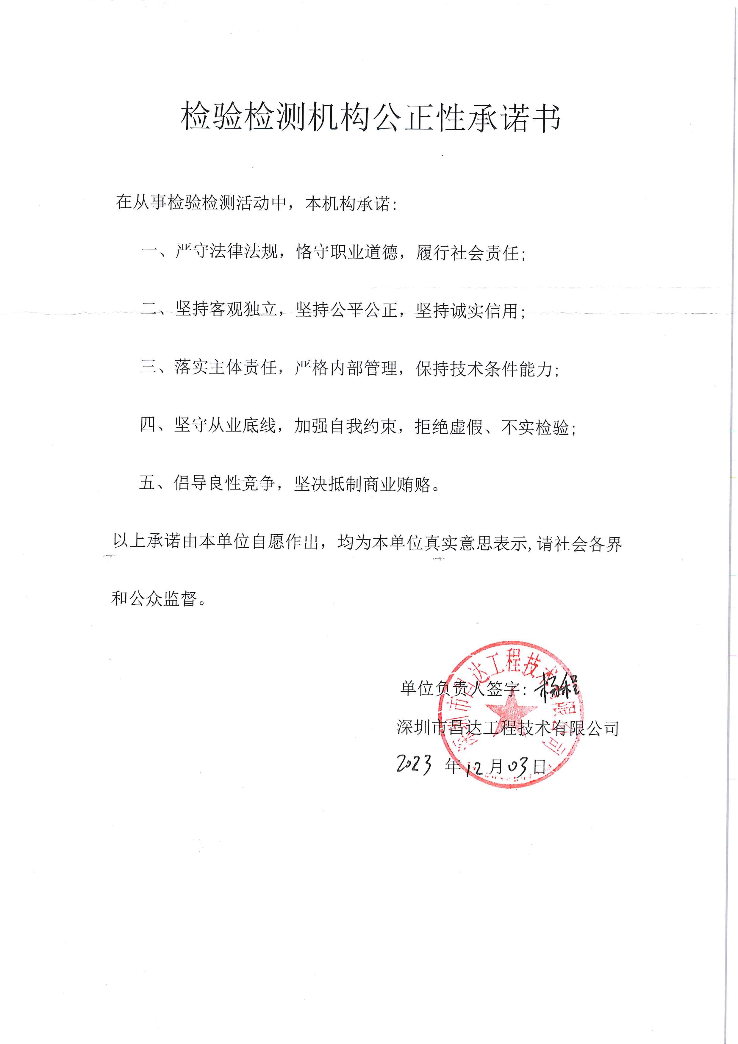• 3、公司及其人員從事檢測(cè)活動(dòng),遵守國(guó)家相關(guān)法律法規(guī)的規(guī)定,遵循客觀獨(dú)立、公平公正、誠(chéng)實(shí)信用原則,恪守職業(yè)道德,承擔(dān)社會(huì)責(zé)任。